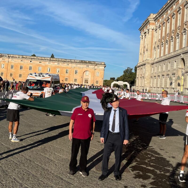 Le Fiamme Cremisi alla “Flik Flok” di Caserta con il Tricolore più lungo d’Italia